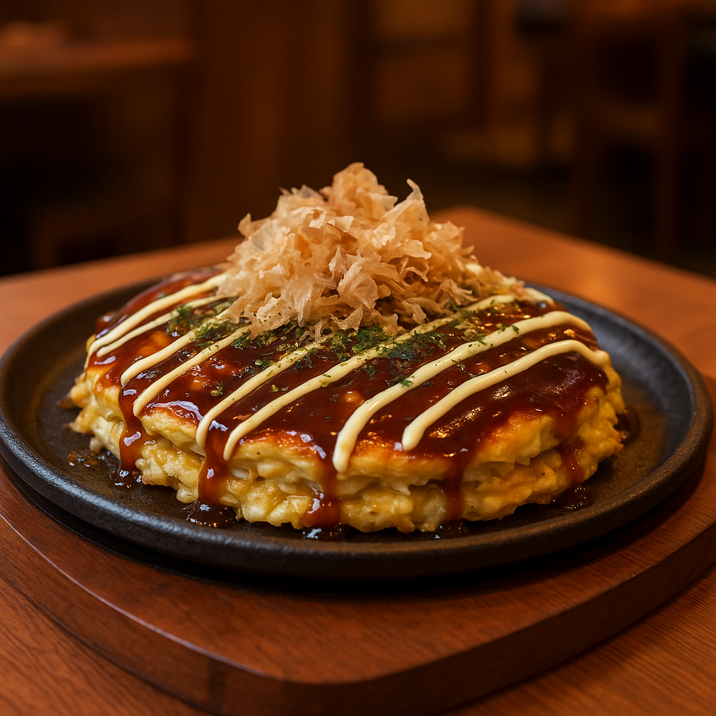Berbahan dasar tepung terigu, kol, telur, dan aneka topping seperti daging, seafood, atau keju, okonomiyaki menjadi simbol dari kreativitas kuliner Jepang yang fleksibel dan menyenangkan.